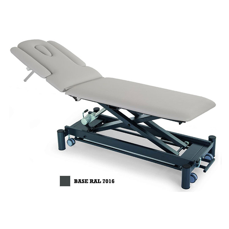 Lettino professionale a tre sezioni regolabile elettricamente in altezza o mediante comando idraulico, per terapia, massaggi e visita medica. I lettini della serie Top non hanno scostamento del piano mentre si regola l’altezza ed hanno quindi un ingombro minore in lunghezza. Struttura disponibile nei colori RAL 7016 grigio antracite e RAL 7035 grigio luce.